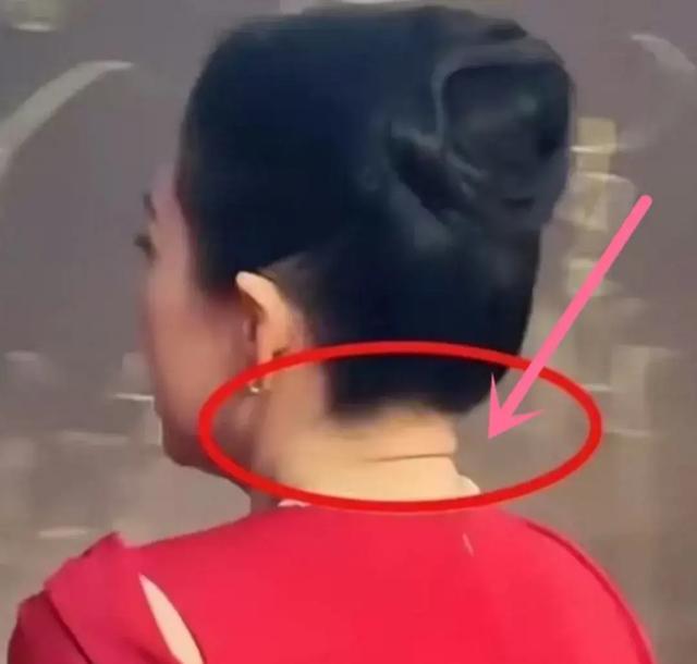 而这次出现,她明显变胖了,腰部有了赘肉,脖子也出现富贵包。