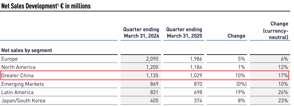 其他市场方面,新兴市场一季度营收增长10%。财报指出,中东部分国家因地区冲突导致销售额下滑。